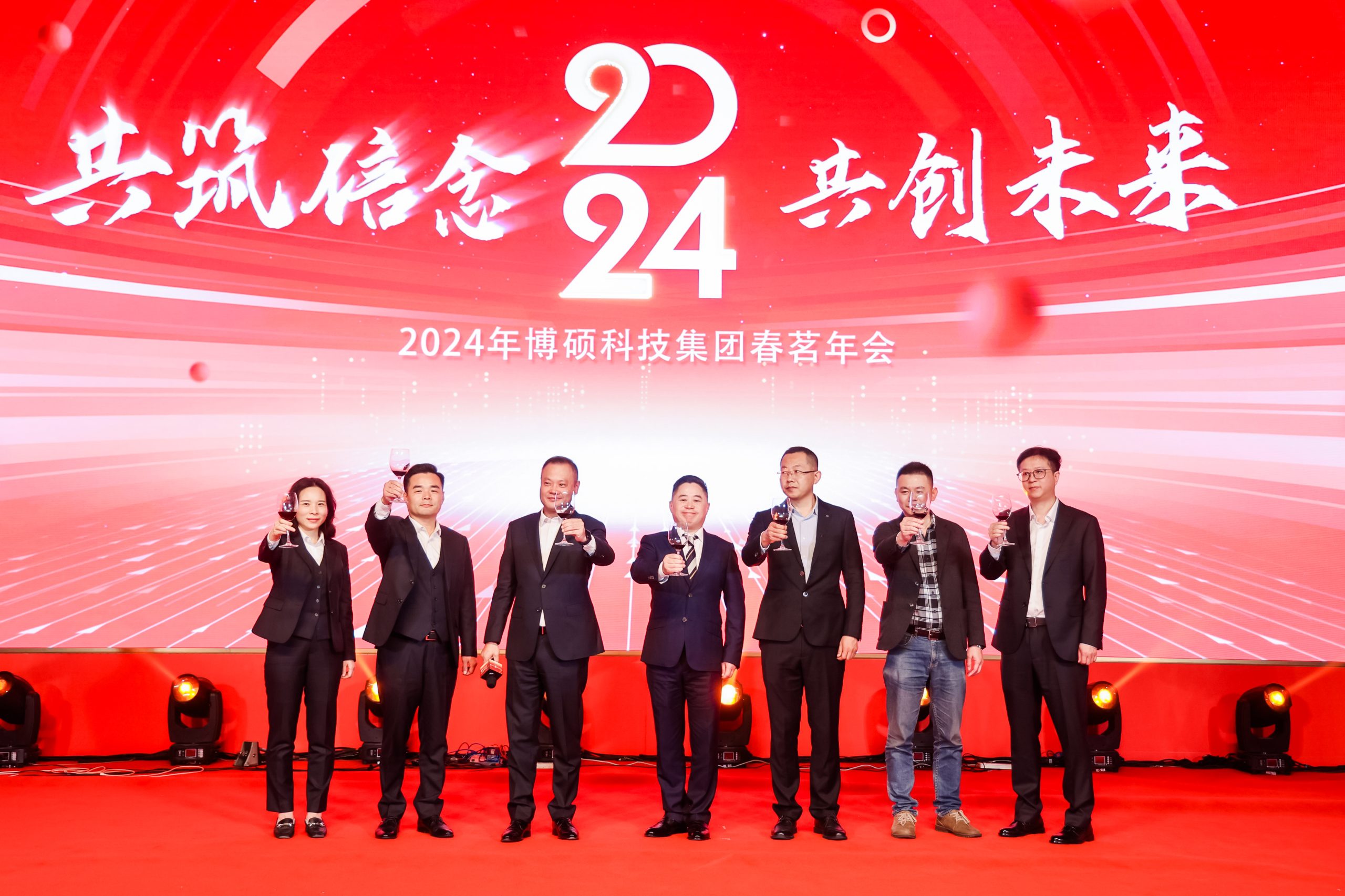 接下来是祝酒环节。公司领导和嘉宾共同上台,与现场所有人共同举杯,为过去一年的辉煌成就和未来的美好前景共同祝贺!相信自己、相信梦想!